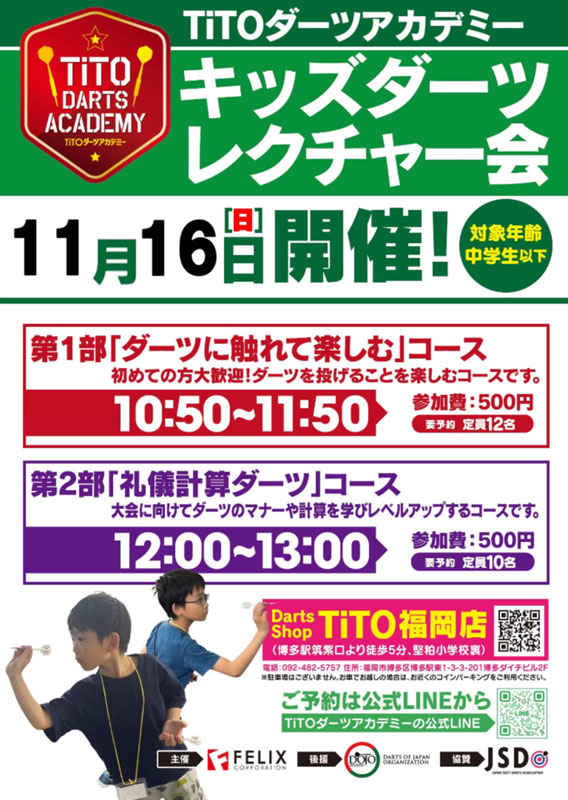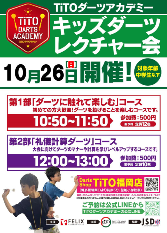 第32回キッズダーツレクチャー会開催(2部制) -ダーツショップTiTO 福岡店-
