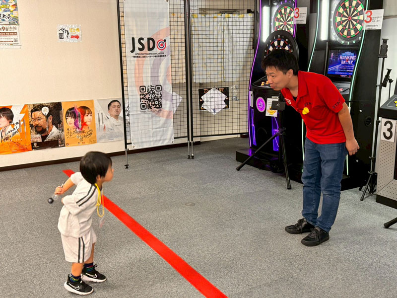 第1部はとにかくダーツを楽しく投げてもらいました。2部とは違い、細かなレクチャーなどせずにダーツに触れて、ダーツの楽しさを実際に知ってもらうコース内容となっています。高さを133cmに設定したダーツボードを準備しているので、未就学のお子様でも身長を気にすることなく、本格的なソフトダーツを楽しんでいただけました。今回1部は1名だけでしたが、じっくりとレクチャーできました。