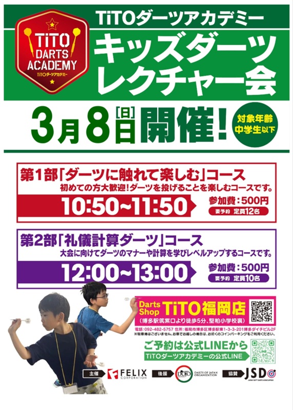 第36回キッズダーツレクチャー会開催(2部制) -ダーツショップTiTO 福岡店-