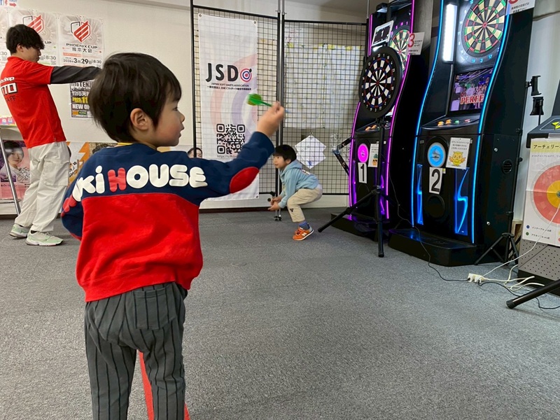 第1部はとにかくダーツを楽しく投げてもらいました。2部とは違い、細かなレクチャーなどせずにダーツに触れて、ダーツの楽しさを実際に知ってもらうコース内容となっています。高さを133cmに設定したダーツボードを準備しているので、未就学のお子様でも身長を気にすることなく、本格的なソフトダーツを楽しんでいただけました。